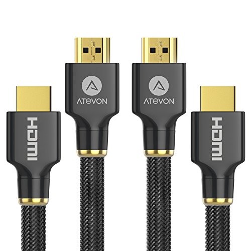 4K HDMI Cable 6ft (2-Pack) – Atevon High Speed 18Gbps HDMI 2.0 Cable – HDCP 2.2 – 4K HDR, 3D, 2160P, 1080P, Ethernet – 28AWG Braided HDMI Cord – Audio Return for TV, Monitor, Blu-ray Player, Apple TV