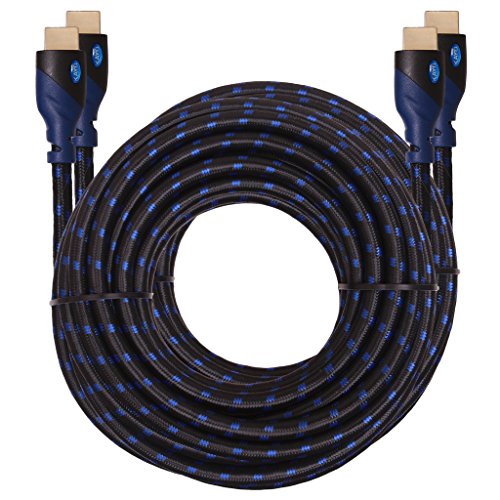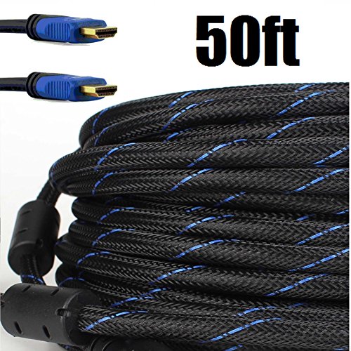 CableVantage PREMIUM HDMI CABLE 50FT 15M V1.4 For 1080P 3D TV DVD PS4 XBOX One HDTV Monitor Blue Braided Nylon Cord, Gold Tip