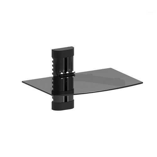 Mount World 1444 Compact Glass Component Single Shelf for DVD Player, Blu-ray Player, Cable Box, Satellite, Wii and Video Accessories (14.17″ Wide X 9.84″ Deep X 1″ Height)