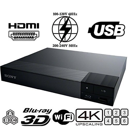 SONY S6700 Multi Zone 2k/4k Upscaling – Bluetooth- 2D/3D – Wi-Fi – Multi System Region Free Blu Ray Disc DVD Player – PAL/NTSC – USB – 100-240V 50/60Hz for World-Wide Use & 6 Feet HDMI Cable