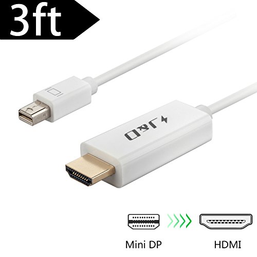 J&D Gold Plated Mini DisplayPort (Thunderbolt Port) to HDMI Cable Adapter (White, 3 Feet)