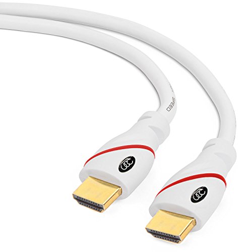 HDMI Cable 40 FT – 2.0 HDMI Cable 4K Ultra-High Speed ( 40 FEET Long ) CL3 Rated – Supports Ethernet Audio Return ( ARC ) 4K Ultra HD 2160p / Bandwidth up to 18Gbps / 3D HD 2 X 1080p Ready – 40ft HDMI Cord White PVC Class 3 in wall Rated with Gold Tip Connector