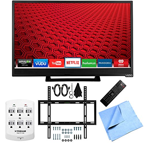 Vizio E24-C1 – 24-Inch 1080p 60Hz Smart LED HDTV Slim Flat Wall Mount Bundle includes E24-C1 – 24-Inch 1080p 60Hz Smart LED HDTV, Slim Flat Wall Mount Kit, 6 Outlet Wall Tap w/ 2 USB Ports and Microfiber Cloth