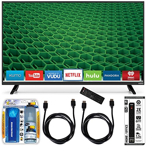 Vizio D50-D1 – D-Series 50-Inch Full Array LED Smart TV Accessory Bundle includes TV, Screen Cleaning Kit, Power Strip with Dual USB Ports and 2 HDMI Cables