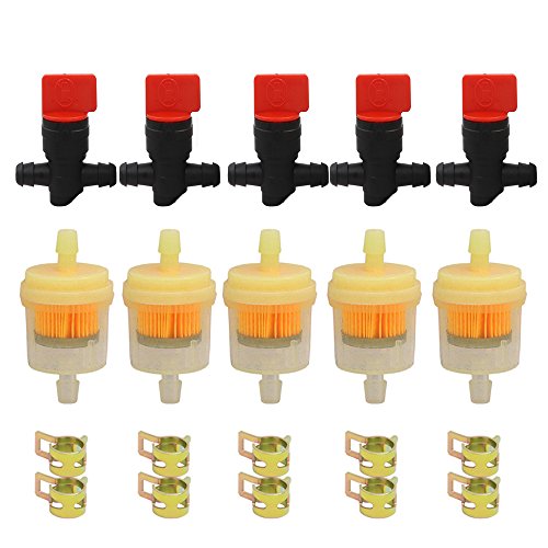 Package includes: 5x Shut off valves 5x Fuel Filters 10x Clamps Compatibility: Maico Husqvarna KTM Ossa Trial Bultaco Yamaha Motorcycle Lawn Mower Tractor Briggs & Stratton 493960 494768 697947 698183 698183MA, MU698183 Toro 1-603770, 54-3150 Murray, Snapper 7034212YP, 7034212 John Deere AM107340 AM36141 FUEL FILTERS REPLACE #S BRIGGS & STRATTON # BRIGGS & STRATTON 5056