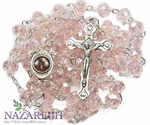 Catholic Fine Pink Crystal Beads Rosary With Metal Crucifix Long Beaded Necklace With Holy Soil Medalion In The Middle From Jerusalem Holy Land. Product Features Catholic Fine Pink Crystal Beads Rosary With Metal Crucifix Long Beaded Necklace With Holy Soil Medalion In The Middle From Jerusalem Holy Land. Cross (H X W) : 4 cm