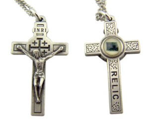 Mens Womens Catholic Gift 1 1/2 Inch Pewter Jerusalem Cross Crucifix 3rd Class Relic Pendant Medal with 20 Inch Chain Necklace Religious Jewelry