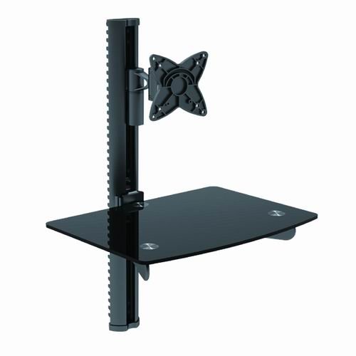 Perfect for mounting source devices next to wall mount flat panel televisions. This combination dvd shelf-tv wall mount is ideal for a neat and sleek finish for your audio-video components and TV (sized 17-32″) with VESA 100 x 100 or 75×75.