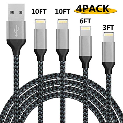 iPhone Cable MFi Certified Lightning Cable [4 Pack 3FT 6FT 10FT 10FT] Extra Long Nylon Braided USB Charger Syncing Cord Compatible iPhone Xs Xs Max XR X 8 8Plus 7 7Plus 6S 6S Plus SE iPad iPod