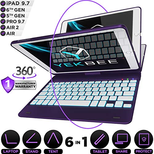 iPad Keyboard Case for iPad 2018 (6th Gen) – iPad 2017 (5th Gen) – iPad Pro 9.7 – iPad Air 2 & 1 – Thin & Light – 360 Rotatable – Wireless/BT – Backlit 10 Color – iPad Case with Keyboard (Violet)