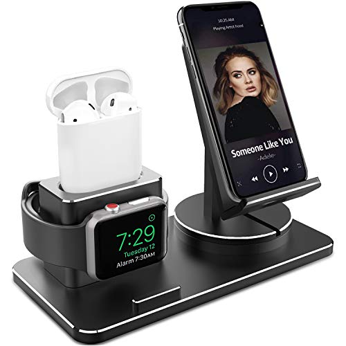 Anthter Apple Watch Stand, 3 in 1 Aluminum Alloy Charging Stand Dock Station for iWatch Series 4/3/2/1, AirPods and iPhone XS/X Max/XR/X/8/8Plus/7/7Plus/SE/5S/6S/PLUS/9.7 inches iPad with Various Case