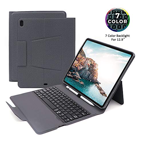 Beeasy Keyboard Case for iPad Pro 12.9″ 2018 (Only fit 2018), iPad Keyboard Case with Pencil Holder &7 Colors Backlit, Keyboard Case Fit for iPad Pro 12.9 inch 2018 (3rd Gen), Black