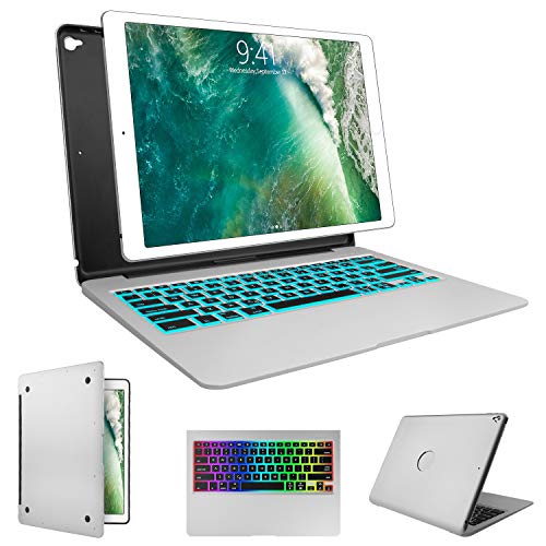 SENGBIRCH Keyboard Case for iPad Pro 12.9-2017(2nd Gen), 2015(1st Gen) 12.9, 7 Colors Backlit Wireless Keyboard Auto Wake/Sleep, Back Hard Keyboard Cover, Ultra Slim (Silver, 12.9 inch)