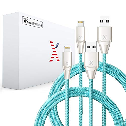 Xcentz iPhone Charger 2 Pack 6ft, Apple MFi Certified Lightning Cable Fast Charger iPhone Cable, Durable Braided Nylon Metal Connector Charger Cord for iPhone X/XS Max/XR/8 Plus/7/6/5/SE, iPad, Blue