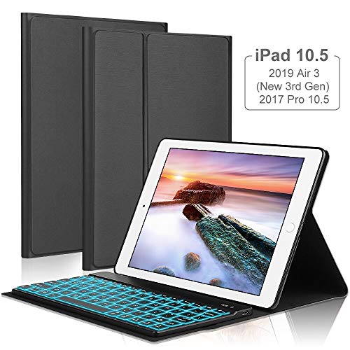 iPad Keyboard Case for iPad Air 2019( 3rd Gen)10.5″ /iPad Pro 10.5 2017,OYOSUOGG 7 Color Backlit Wireless Bluetooth Keyboard Case Folio Protective Slim Stand Cover with Auto Sleep/Wake Function -Black