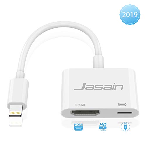 Jasain Compatible with iPhone to HDMI Adapter Cable, Digital AV Adapter 1080p HD TV Connector Compatible with iPhone X 8 7 6Plus, iPad, iPod to TV Projector Monitor White