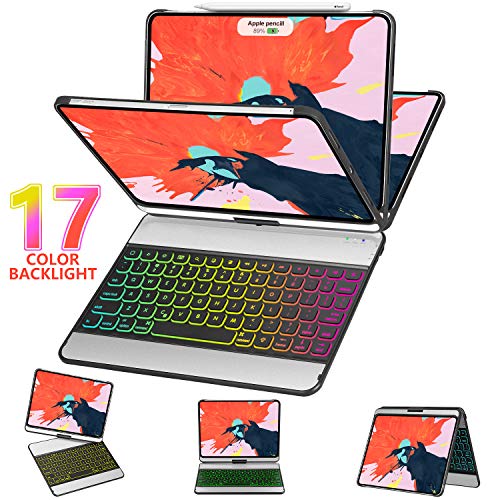 iPad Pro 11 Case with Keyboard – 360 Rotation 180 Flip – 17 Color Backlit – Auto Sleep/Wake – Wireless Keyboard for New iPad Pro 11 Inch 2018 – Support Apple Pencil Charging – Black