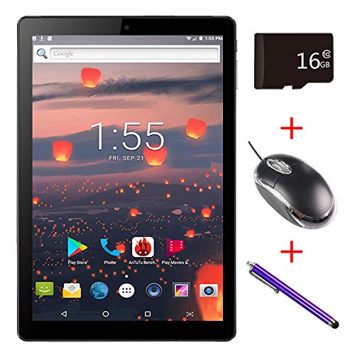 Mirzebo Android Tablet 10.1’’Touchscreen Wi-Fi Tablet,1GB RAM, 16GB Storage, Bluetooth,GPS, USB, IPS Screen, Unlocked Tablet PC with Dual Sim Card Slots,Dual Camera,Mouse (Black)
