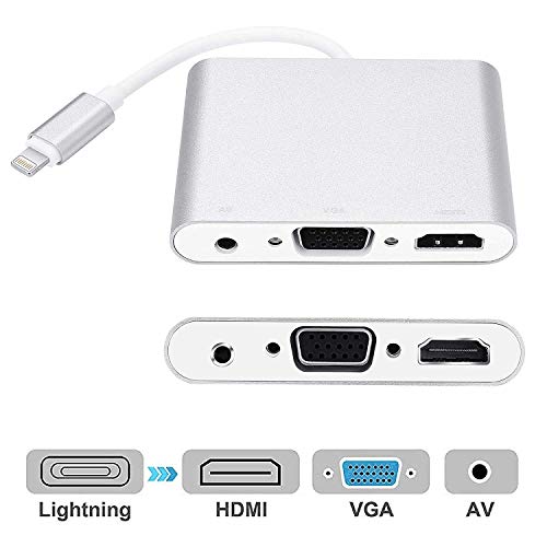 Bambud Compatible with iPhone iPad to HDMI VGA AV Adapter Converter, 4 in 1 Plug and Play Digital AV Adapter Compatible with iPhone Xs Max XR 8 7 6s Plus 6 iPad iPod to HDTV Projector Monitor
