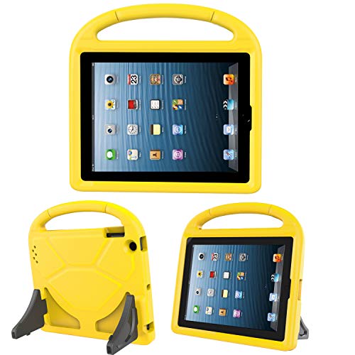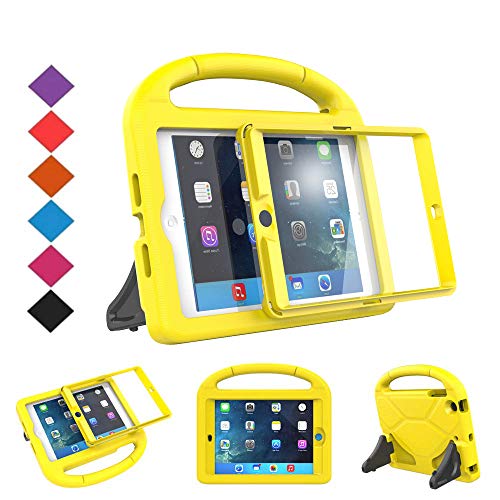 BMOUO Case for iPad Mini 1 2 3 with Built-in Screen Protector, Shockproof Lightweight Hard Cover Handle Stand Kids Case for Apple iPad Mini 1st 2nd 3rd Generation, Yellow