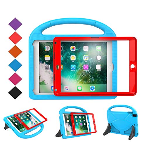 BMOUO Kids Case for New iPad 9.7 2018/2017 – Built-in Screen Protector Shockproof Light Weight Handle Convertible Stand Case for iPad 9.7 Inch 2018 (6th Generation) / 2017 (5th Gen) – Blue+Red