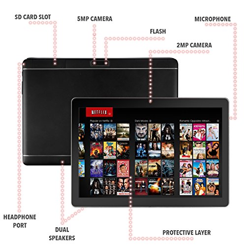 10.1″ Inch 1080p Full HD Display Tablet, 10 Android Tablet, Android 7.0,2GB+32 GB,Dual Camera Front 2MP+ Rear 5MP,Bluetooth and WiFi Kid-Proof Case and Parent Control Apps