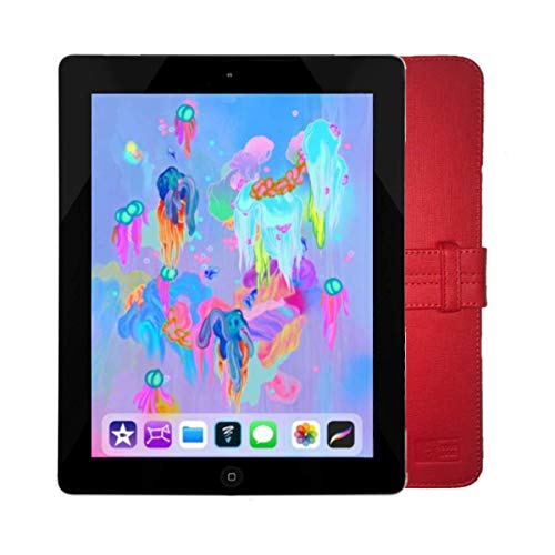 Apple iPad 4th Generation 9.7″ Tablet 16GB, Black, WiFi – Bundle with Red Folio Case (Refurbished)