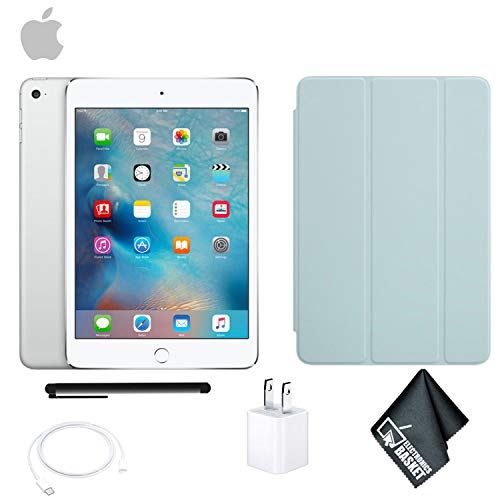 Apple iPad Mini 4 128GB Tablet 7.9 Inch (Wi-Fi, Silver) MK9P2LL/A – Bundle with Turquoise ipad Mini 4 Case + More