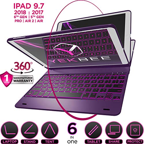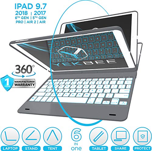 iPad Keyboard Case for iPad 2018 (6th Gen) – iPad 2017 (5th Gen) – iPad Pro 9.7 – iPad Air 2 & 1 – Thin & Light – 360 Rotatable – Wireless/BT – Backlit 10 Color – iPad Case with Keyboard