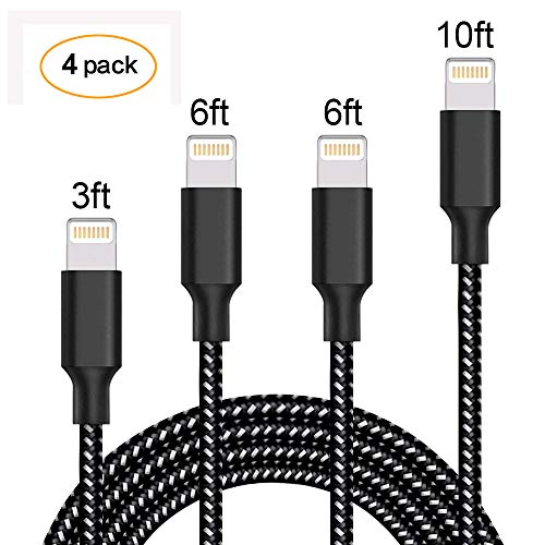 DeFitch Cable (4 Packs: 3FTx1+ 6FTx2+10FTx1) Nylon Extend Braided USB Charging Cable with Aluminum Connector Compatible with iPhone Xs X 8 7 6S 6 Plus iPad 2 3 4 Mini, iPad Pro Air [Gray Black]