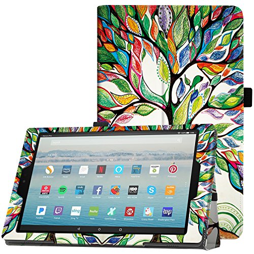 Famavala Folio Case Cover with Auto Wake/Sleep for 10.1″ Fire HD 10 Tablet [7th Generation 2017 / 5th Generation 2015] (Tree)