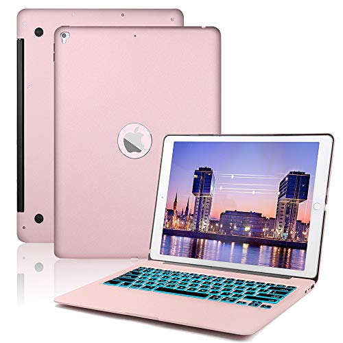 Keyboard Case Compatible iPad Pro 12.9-2017(2nd Gen)- 2015(1st Gen)-7 Color Backlit Keyboard Auto Wake/Sleep,iPad Pro 12.9 Keyboard Case (Rose Gold)