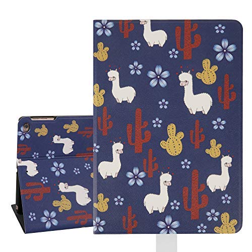 Cute iPad Air Case, Cactus Llama Design iPad 9.7 Case, Cute Folio Stand Case for iPad Air 2 & Auto Sleep/Wake Function, Protective Smart Case Cover for iPad 6th/5th Gen 2018 2017