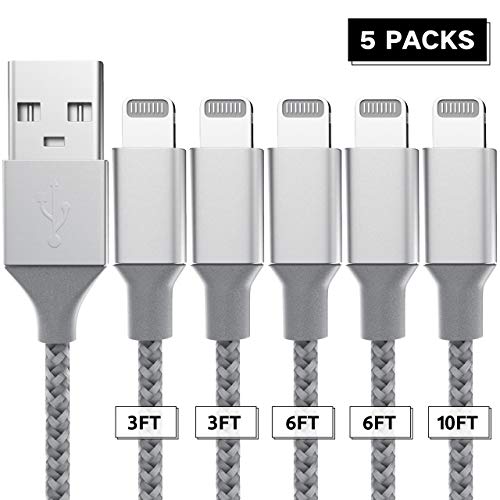 Lightning Cable, iPhone Charger Charging Cable Fast Speed Data Transmission Charging Cable Nylon Braided Cord Compatible with iPhone Xs/XS Max/XR/X/8/7/6/5 iPad Mini/Pro/Air iPod-5 Pack