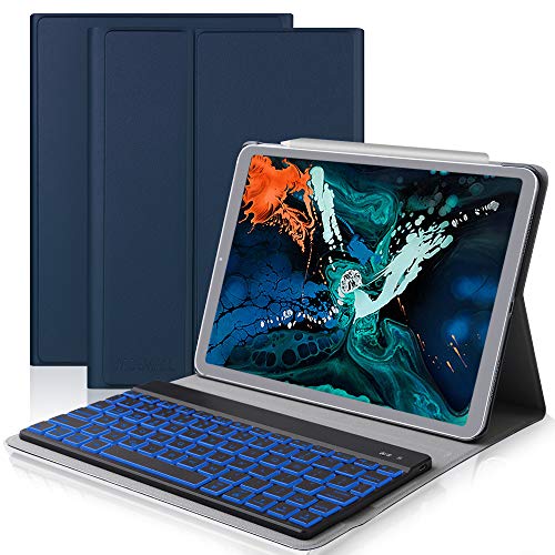 iPad Pro 11 Keyboard Case for iPad Pro 11 2018, iPad Pro 2018 Leather Tablet Case, Wireless Keyboard and Smart Connector, Ultra Thin PU Leather Flip Stand Tablet Protector, Auto Wake/Sleep, Blue
