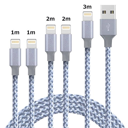 Lightning Cable, Larnn iPhone Charger 5 Pack Fast Charging Cable Durable Nylon Braided Extra Long Charging Cable Compatible with iPhone Xs/XS Max/XR/X/8/7/6/5 iPad Mini/Pro/Air iPod