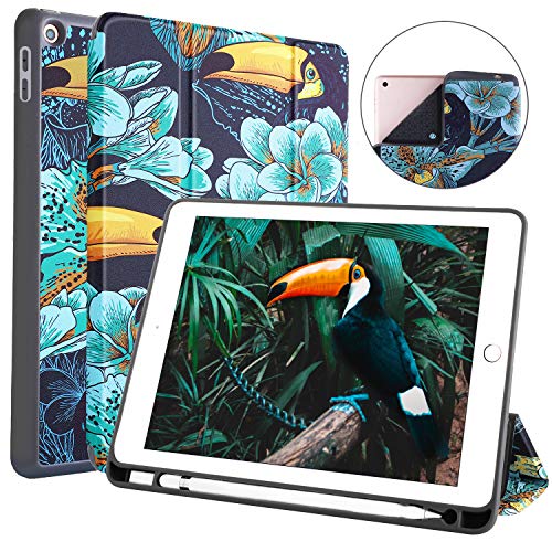 Soke New iPad 9.7 2018/2017 Case with Pencil Holder, Lightweight iPad Case Trifold Stand with Shockproof Soft TPU Back Cover and Auto Sleep/Wake for iPad 9.7 inch 5th/6th Generation,Droll Bird