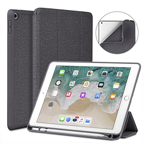 New iPad 9.7 2018/2017 Case with Pencil Holder, Soke Smart iPad Case Trifold Stand with Shockproof Soft TPU Back Cover and Auto Sleep/Wake Function for iPad 9.7 inch 5th/6th Generation, Dark Grey