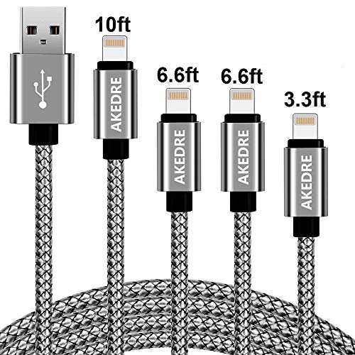 Phone Cable .4Pack (3/6/6/10FT) Nylon Braided USB Charging .& Syncing Cord Compatible Phone. X/8/8 Plus/7/7 Plus/6s/6s Plus/SE/IPad iPod Nano(Grey)