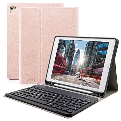 iPad Keyboard Case 9.7 for New iPad 2018 6th Gen, iPad Pro 9.7″ 2017 5th Gen, iPad Air 2/Air, Wireless Detachable Keyboard, Multiple Angle Stand Honeycomb Cover with Pencil Holder (Champagne)