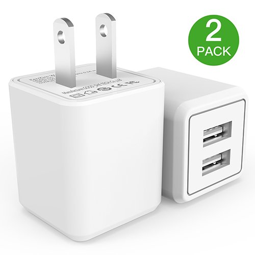Wall Charger, 2.4A 12W Dual Port Portable Universal USB Wall Charger for Apple iPhone,iPad, Samsung Galaxy, HTC Nexus Moto Blackberry, Bluetooth Speaker Headset & Power Bank, White (2-PACK)