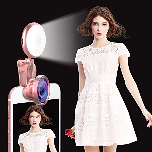 Selfie Light with iPhone Camera Lens,Yomiro 360° LED Flsh Light + 4K HD Wide Angle Lens + 185° Fisheye Lens + 50X Macro Lens, Rechargeable Clip On Selfie Light For Phone, iPhone, iPad, Samsung Gal