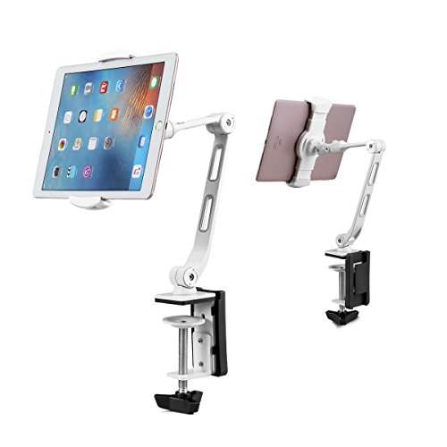 Suptek 360 Degree Adjustable Stand/Holder with Clamp for Tablets & iPad iPhone Samsung Asus Tablet Smartphone and more up to 13 inches White YF208BW