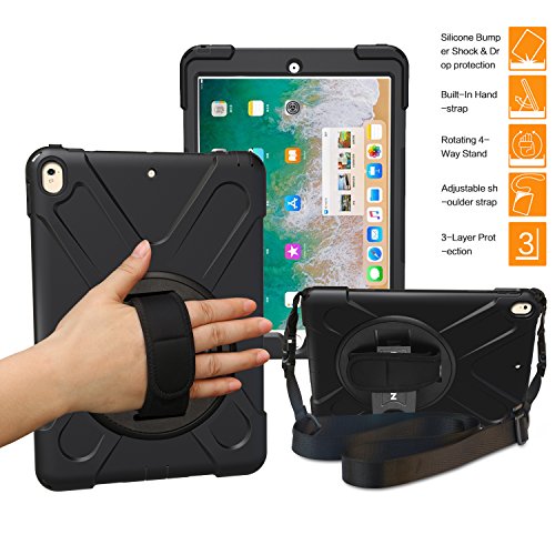 iPad Case, iPad Pro Case 10.5 Inch, BRAECNstock Three Layer Drop Protection Rugged Protective Heavy Duty iPad Case with Kickstand / a Hand Strap / a Shoulder Strap for Apple iPad Pro10.5 Case Black