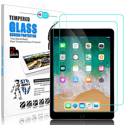 [2 Pack] iPad 9.7 inch 2018 / 2017 / iPad Pro 9.7 Screen Protector, Elegant Choise 9H Bubble Free Anti-Fingerprint Tempered Glass Screen Protector for Apple iPad (5th generation) / A1823 / A1822