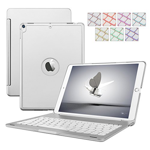 New iPad 9.7 5th Generation/iPad Air Keyboard Case,Dingrich Stylish Bluetooth Keyboard with 7 Color Backlight,Hard Shell Cover,Aluminum Alloy Case for iPad Model: A1822/A1823/A1474/A1475/A1476-Silver