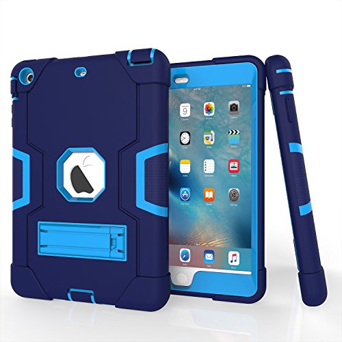 iPad Mini Case, Mini 2 Case, Mini 3 Case, Rugged Kickstand Series – Shockproof Heavy Duty Hybrid Three Layer Armor Defender Kids Child Proof Case Cover for iPad Mini 1/2/3 -Navy Blue
