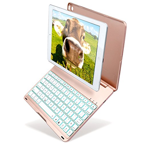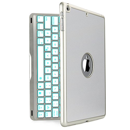 iPad Air Keyboard Case, iEGrow F8S Slim Bluetooth Clamshell Keyboard Cover with 7 Colors LED Backlit Keyboard for iPad Air 1 Model A1474/A1475/A1476(Silver)