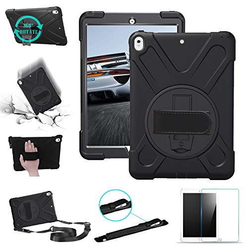 iPad Pro 10.5 Case, Stand Hard Layer Shockproof Dropproof Hybrid Cover Skin W/ Strap shoulder harness & Pen Pencil holder Case for iPad Pro 10.5 Inches 2017 (Black)