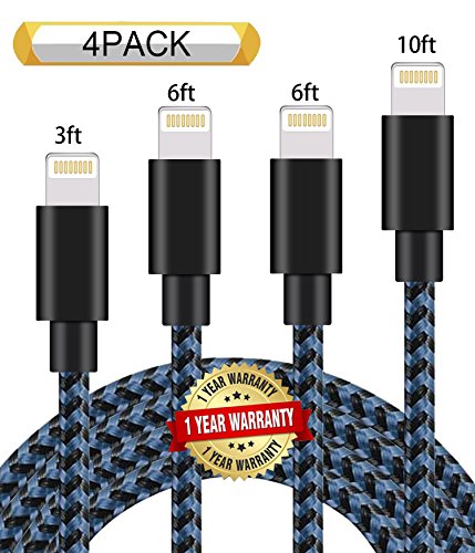 Ulimag Lightning Cable 4Pack 3FT 6FT 6FT 10FT Nylon Braided Certified iPhone Cable USB Cord Charging Charger for Apple iPhone X, 8, 7 Plus, 6, 6s, 6+, 5, 5c, 5s, SE, iPad, iPod Nano, iPod Touch Black